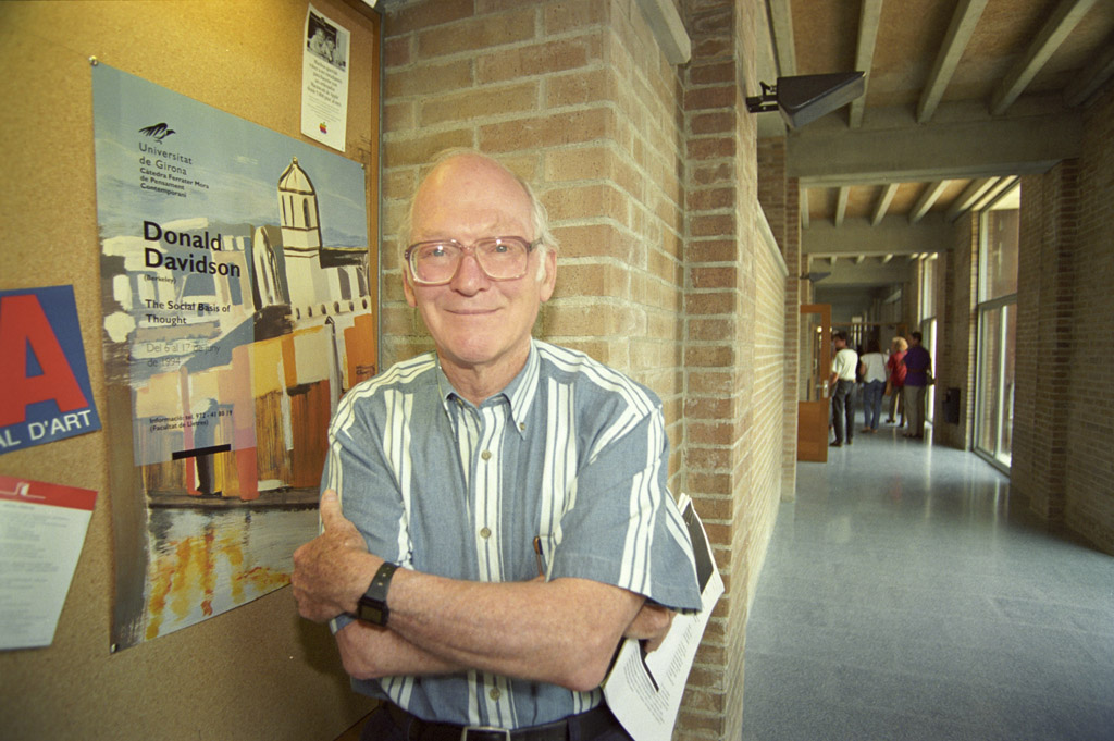 Donald Davidson (Springfield, Massachusetts, 1917 - Berkeley, California, 2003) va ser Professor de Filosofia a la Universitat de California (Berkeley) i és considerat un dels filòsofs del llenguatge més influents del segle XX. Va doctorar-se el 1949 a la Universitat de Harvard i va ser professor a diferents universitats americanes (Stanford, Rockefeller i Chicago). Va ser un dels màxims exponents de l’anomenada filosofia de la ment, desenvolupada en dos llibres fonamentals; Essays on Actions and Events (1980), i Inquiries into Thruth and Interpretation (1984). Al primer, Davidson centrà el seu estudi en les nocions de decisió i acció, en la naturalesa dels actes mentals i de les relacions causals, i en la semàntica dels llenguatges naturals. Al segon, analitzà la relació entre les teories de la veritat i les teories del significat, així com els conceptes de traducció, creença, interpretació radical, referència, metàfora i comunicació.